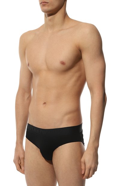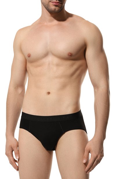Черные брифы сшили из стрейчевого трикотажа, созданного по сертифицированной технологии Outlast®. Материал из шелковистой виск озы и длинноволокнистого египетского хлопка отличается мягкостью, отлично пропускает воздух и быстро отводит влагу, поэтому в таких трусах будет комфортно в течение всего дня. Благодаря плоским эластичным швам и широкому поясу-резинке изделие удобно облегает фигуру.