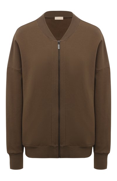 Эластичные ворот, пояс и манжеты придают свободному кардигану со спущенной линией плеч сходство с бомбером. Модель сшили из френч терри, органический хлопок для которого вырастили безопасным для природы способом.