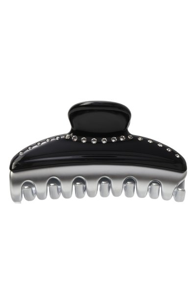 Глянцевый блеск этой черной заколки-краба усилили дорожкой из прозрачных кристаллов Swarovski. Для изготовления аксессуара с золотистой миниатюрной эмблемой использовали легкий ацетат из древесной целлюлозы и хлопка. Отшлифованные крупные зубцы и запатентованная система пружины хорошо фиксируют локоны и не повреждают волосы.