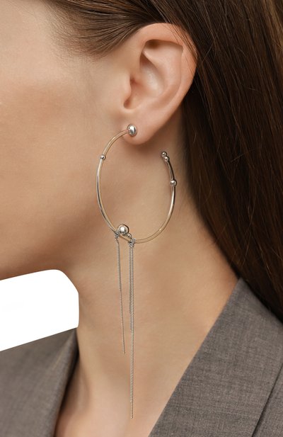 Серьги Quechua в виде незамкнутого кольца с деталями в форме сфер вдохновлены украшениями перуанског о народа Моче. Для изготовления модели использовали бронзу с родиевым и платиновым покрытиями.