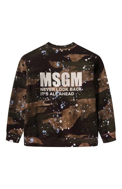 Для пошива свитшота использовали хлопковый трикотаж. Рукава реглан и круглый вырез акцентировали зигзагообразной строчкой бордового оттенка. Спереди разместили разноцветную аппликацию в виде эмблемы марки с изображением пегаса.
