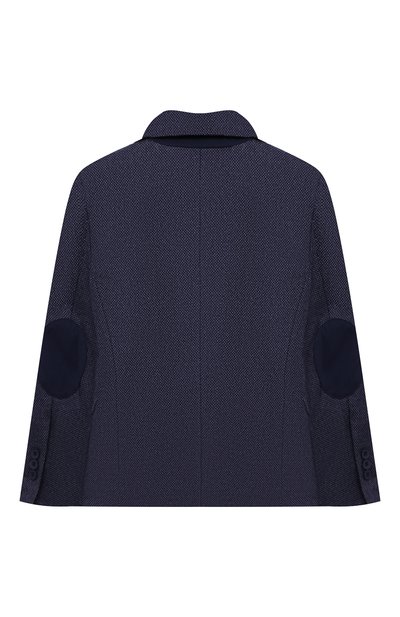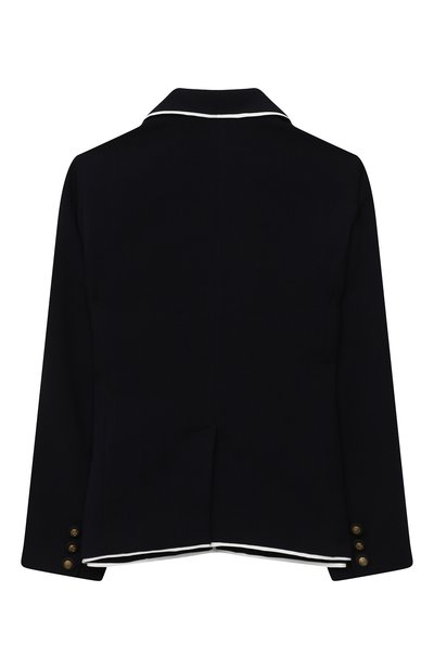 Однобортный блейзер с двумя врезными карманами выполнен из трикотажа пунто милано в мерцающую клетку. Широкий лацкан украшен миниатюрной заклепкой-сердцем. Приталенная модель без подклада, застегивающаяся эмалевыми пуговицами, может стать основой школьного образа.