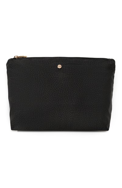 Косметичку с кожаной отделкой сшили из влагостойкого текстиля с принтом OP. Модель с фирменной заклепкой-винтом на передней панели застегивается сверху молнией с брендированным пуллером.