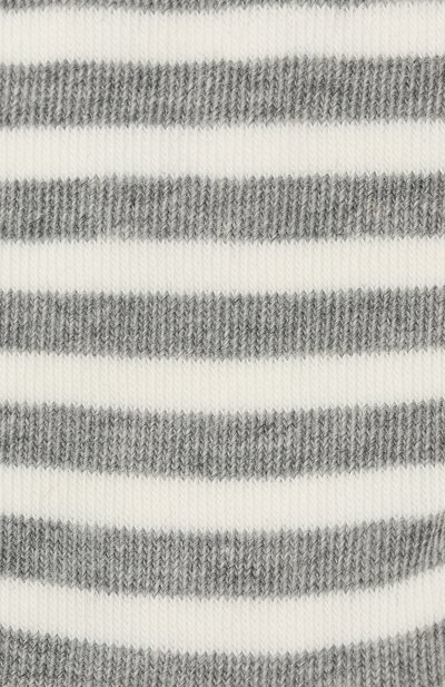 Меланжевые колготки выполнили из эластичного хлопкового трикотажа с добавлением полиамида. Модель с широким поясом украсили фуляровыми узорами.