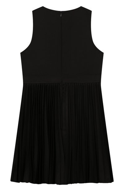 Сарафан с глубоким вырезом и асимметричными складками на подоле сшили из костюмной ткани на основе вискозы. Модель с декоративными пуговицами на вшитом поясе застегивается потайной молнией сзади.