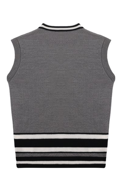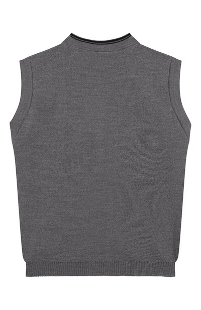 Лаконичный жилет легко пропишется в школьном гардеробе. Для изготовления модели с полосатой отделкой использовали мягкую шерсть мериноса, поддерживающую оптимальный микроклимат.