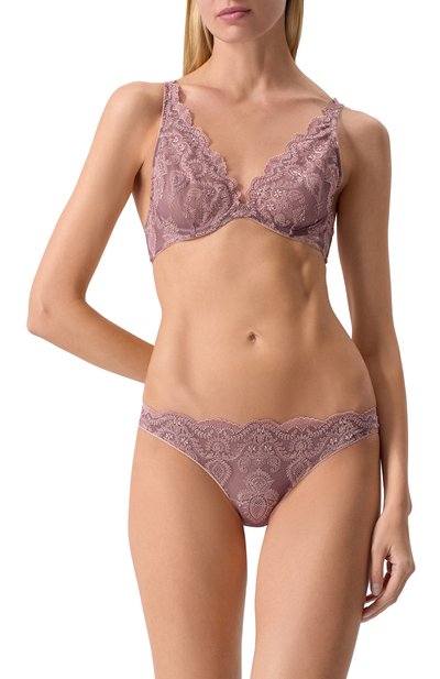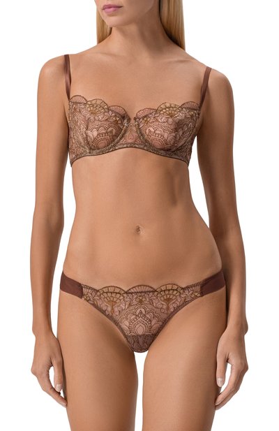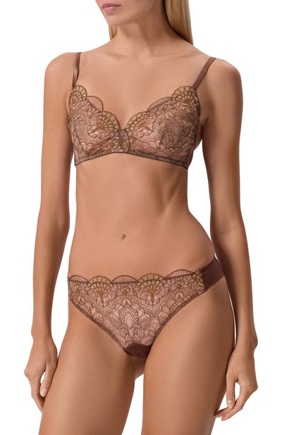Трусы с фестончатым эластичным поясом выполнили из французского кружева и полупрозрачного тюля. Белье из коллекции Venetian Glass дополнили хлопковой ластовицей.