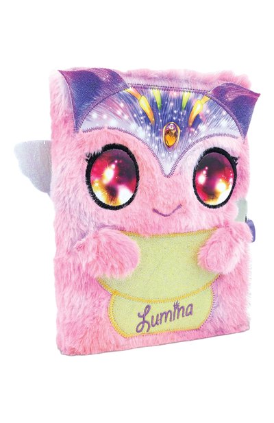 Плюшевую обложку блокнота выполнили в виде Агаты, питомца звездочки Кристалии из игровой вселенной Nebulous Stars. Внутри – сто разлинованных страниц, набор наклеек и несъемная закладка. В комплекте – мини-блокнот, размещенный в кармане спереди.