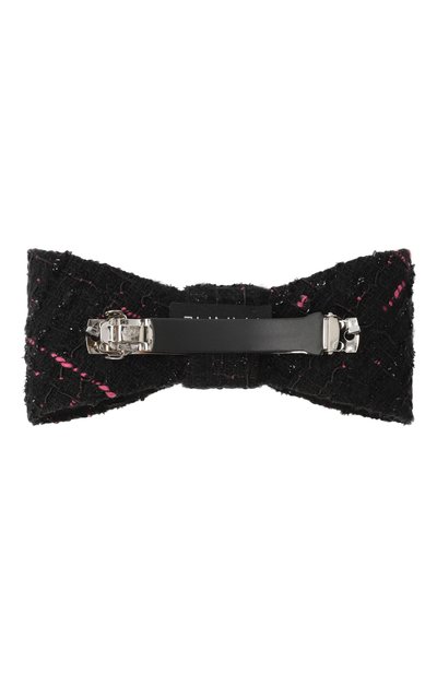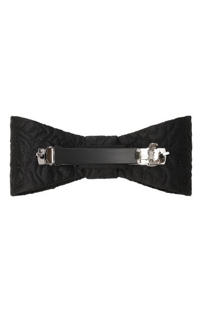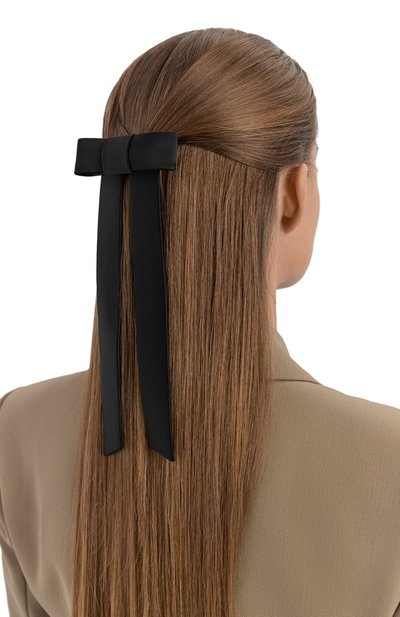 Для изготовления крупного банта с широкими лентами использовали полупрозрачную органзу с рельефным цветочным узором. Чтобы аксессуар не скользил по волосам, зажим обтянули силиконовым чехлом.