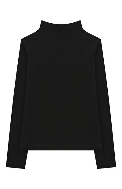 Лаконичная водолазка может поддержать как повседневные, так и школьные образы ребенка. Для создания модели использовали тонкий вискозный трикотаж стрейч в рубчик. Единственным декором служит небольшая литера M, выложенная слева на груди мелкими стразами.