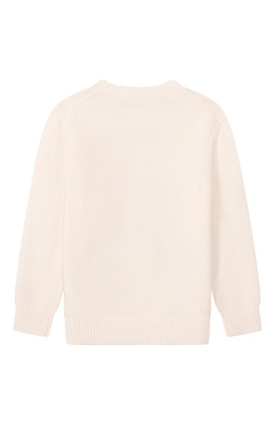 Кремовый пуловер с фактурными узорами связали из мягкой шерстяной пряжи с добавлением нежного пуха альпака и прочного акрила, поэтому в изделии будет комфортно в прохладную погоду. Модель украсили спереди и на рукавах реглан крупной цветочной вышивкой.