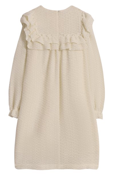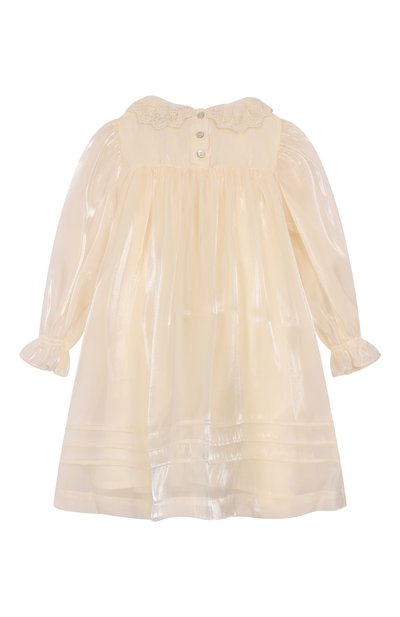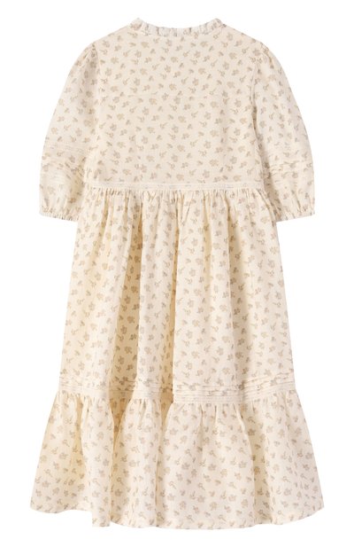 Платье Nora сшили из мягкого дышащего хлопка, который не вызывает аллергию. Наряднее модель делают узкие оборки на манжетах, воротнике-стойке и пуговичной планке спереди, а также ажурный цветочный узор на фестончатом подоле, созданный в технике broderie anglaise.