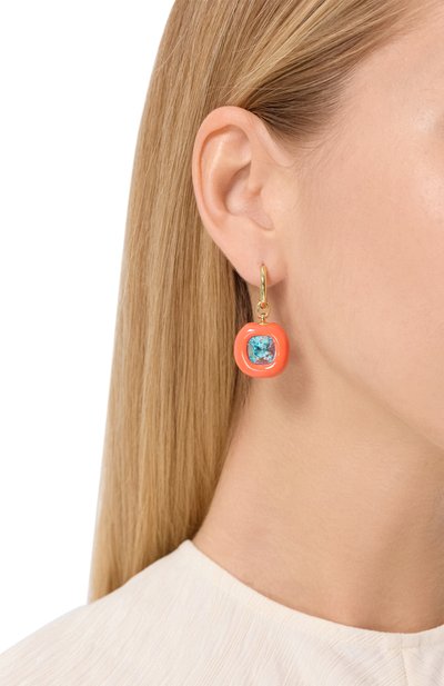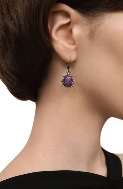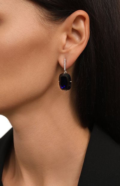 Серьги с английской застежкой выполнили из родированного серебра 925 пробы. В центр украшения с фигурным бантом поместили топаз восьмиугольной огранки.