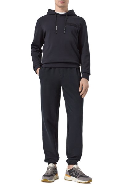 Худи с рукавами реглан, дополненными манжетами-митенками, застегивается короткой молнией. Модель из эластичного трикотажа с добавлением хлопка украсили патчем с рельефным логотипом.