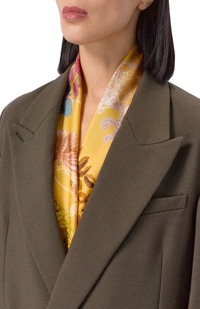 Большой платок из коллекции «Природа Евразии» украсили принтом «Ирисы» в приглушенных оттенках. Края аксессуара из тонкого шелка подшили вручную.
