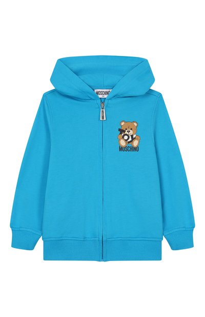 Свитшот с мультяшным принтом в виде животных сшили из гипоаллергенного органического хлопка. Из такого же трикотажа, который хорошо пропускает воздух, выполнили парные джоггеры с эластичным поясом.