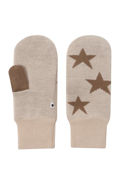 Варежки связали из пряжи на основе органического хлопка, сертифицированного GOTS. На тыльной стороне сформировали мордочку овцы. Эластичная манжета не дает холодному воздуху проникать внутрь.