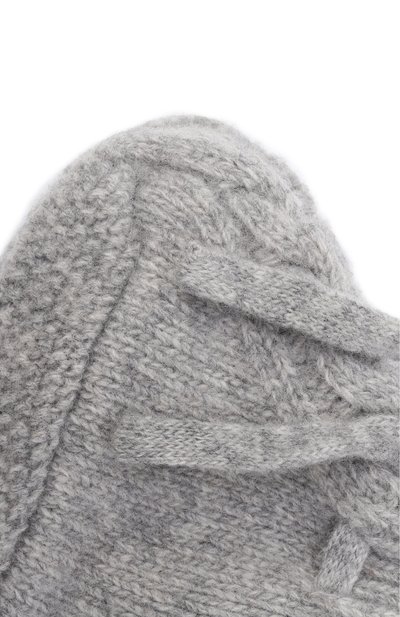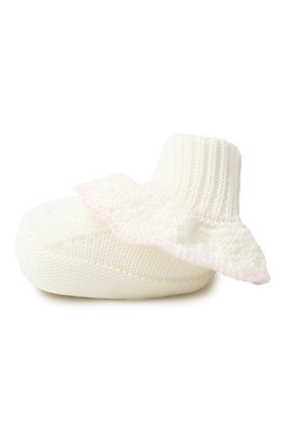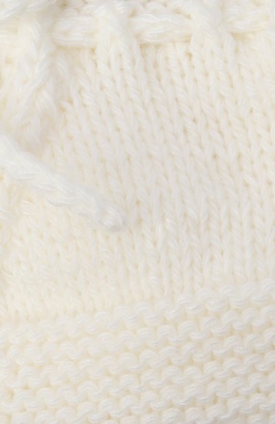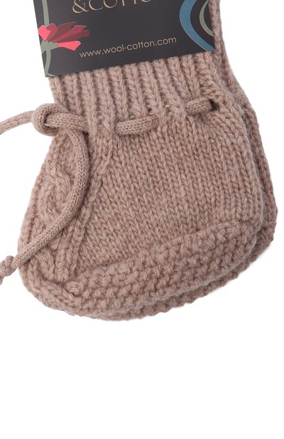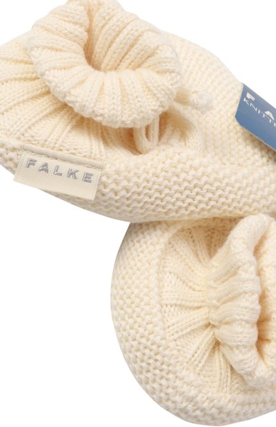 Пинетки с высокой манжетой в рубчик связали из шерстяной пряжи. Модель с кулиской в тон украсили арановым узором.