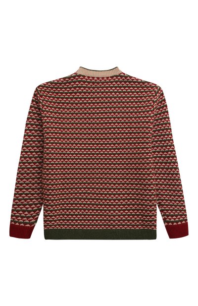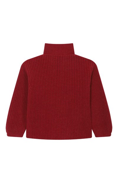 Теплый свитер из смесовой шерсти украсили контрастной жаккардовой надписью Kiss спереди. Чтобы модель с высокой горловиной в рубчик было легче надевать и снимать, на плече предусмотрели пуговицы.