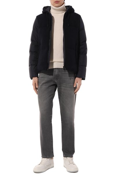 Стеганую куртку с воротником-стойкой, внутренним и тремя внешними карманами сшили из непродуваемой фланели из шерсти первого пострига. Модель на утином пуху, сертифицированном RDS, обеспечит комфорт при температуре от -10 °C до 0 °C. Изделие застегивается встречной молнией, скрытой штормовой планкой на кнопках.
