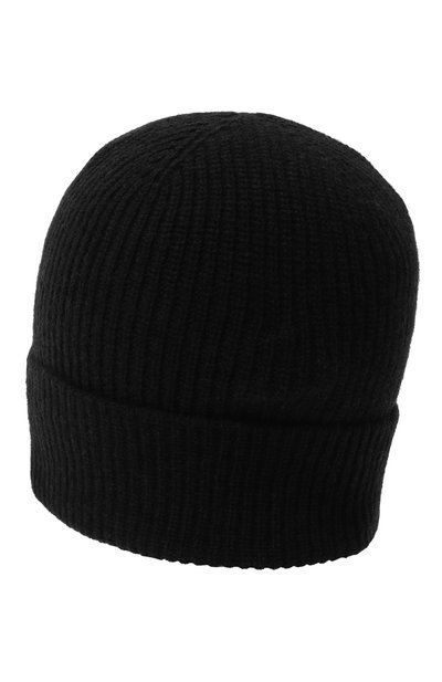 Для изготовления шапки бини использовали мягкую ше рсть мериноса. Широкий отворот аксессуара, связанный объемной резинкой, украсили контрастным вышитым логотипом марки.