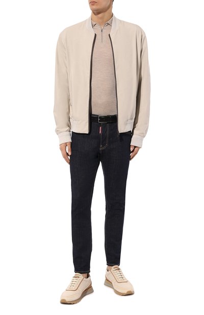 Для пошива джинсов с высокой посадкой и пятью карманами использовали эластичный деним с декоративными заломами и потертостями. Стыки швов укреплены брендированными заклепками. Пояс украшен патчем с логотипом марки.