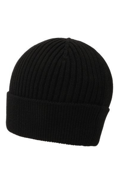 Шапку бини Tarek выполнили фактурной вязкой из пряжи на основе полиакрила и шерсти первого пострига. Широкий отворот украсили крупной брендированной нашивкой.