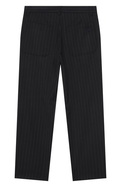 Брюки из коллекции Mini Me сшили из полувискозной клетчатой ткани с монограммой Double B. Модель с миниатюрной нашивкой в виде фирменного триколора под поясом со шлевками дополнили боковыми и задними прорезными карманами.