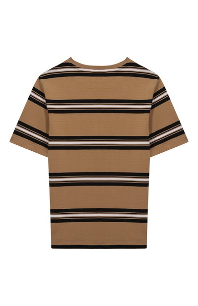Футболку декорировали полосатым фирменным паттерном и крупным логотипом спереди. Модель из хлопкового джерси хорошо пропускает воздух и безопасна для чувствительной кожи ребенка.
