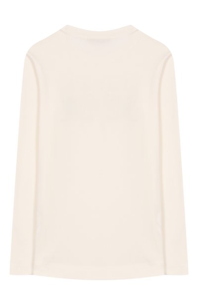 Эластичный лонгслив с круглым вырезом сшит из джерси на основе органического хлопка и вискозы. Модель прямого кроя украшена спереди принтом Ikonik Karl с изображением Карла Лагерфельда и его любимицы — кошки Шуппет.
