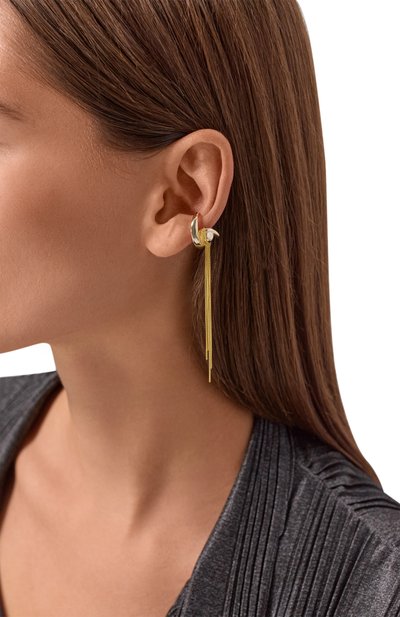 Скульптурный кафф из линии Bubble World дополнили длинными цепочками панцирного плетения. Модель изготовили из латуни с золотым покрытием.