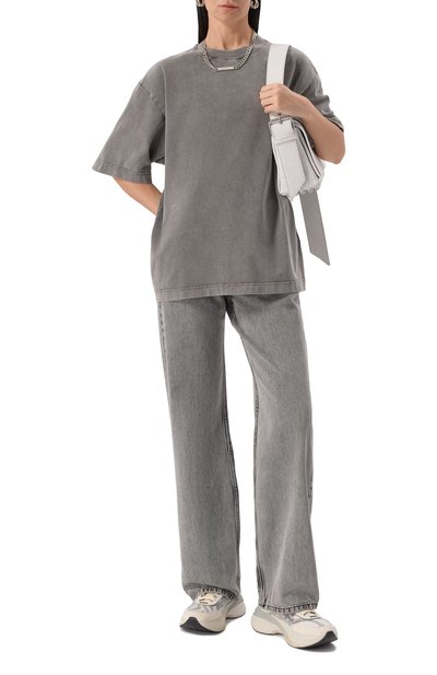 Джинсы высокой посадки сшили из плотного хлопкового денима. Изделие с пятью классическими карманами и брендированным патчем составит комплект с парной рубашкой и будет органично смотреться с вещами в контрастной цветовой гамме.