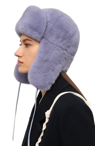 Для пошива шапки-ушанки «Френки» с широким козырьком использовали мех норки с плотной подпушью. Наушники дополнили узкими завязками на несколько тонов темнее.