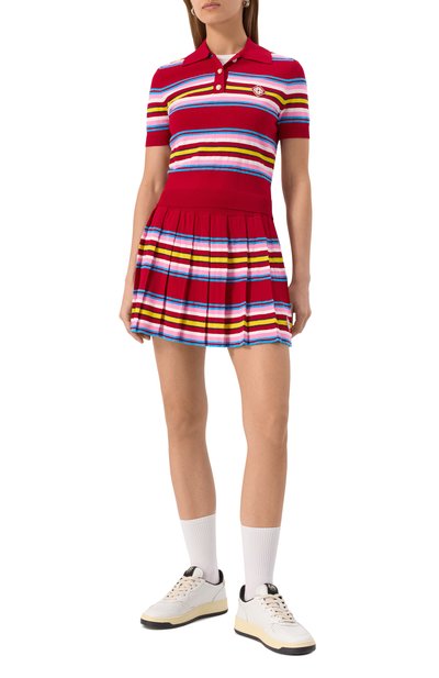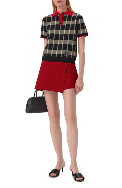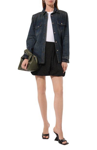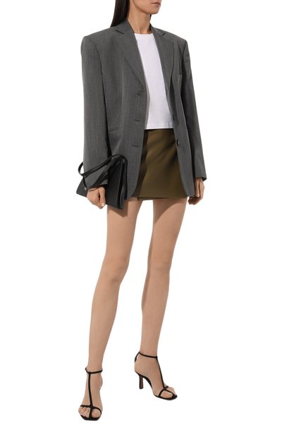 Мини-юбку А-силуэта выполнили из гладкой шерсти. Однотонная модель застегивается сзади потайной молнией. Предлагаем создать образ с блузой и туфлями на шпильке.