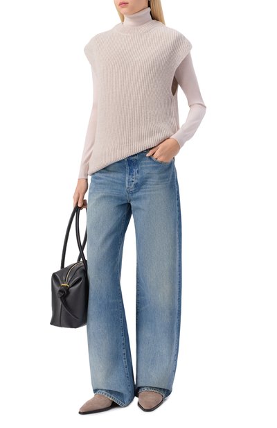 Облегающий жилет с капюшоном и глубокими проймами связали из смесовой шерсти с добавлением вискозы и кашемира. Изделие без декора станет удачной основой повседневного образа с джинсами и тренчем.
