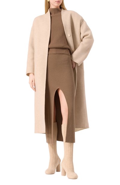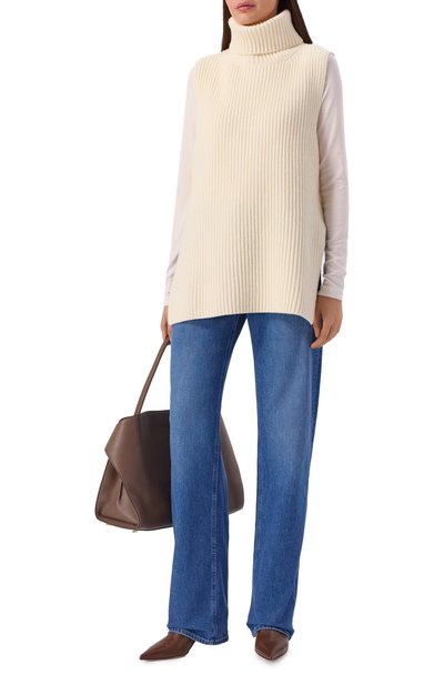 Облегающий жилет с капюшоном и глубокими проймами связали из смесовой шерсти с добавлением вискозы и кашемира. Изделие без декора станет удачной основой повседневного образа с джинсами и тренчем.