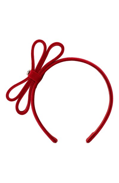 Тонкий ободок обтянули бархатом и украсили двойным бантом из этой же ткани. Центр декора подчеркнули кристаллом в форме сердца. На внутренней стороне — лента грогрен в тон.