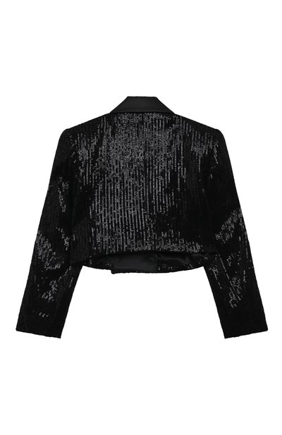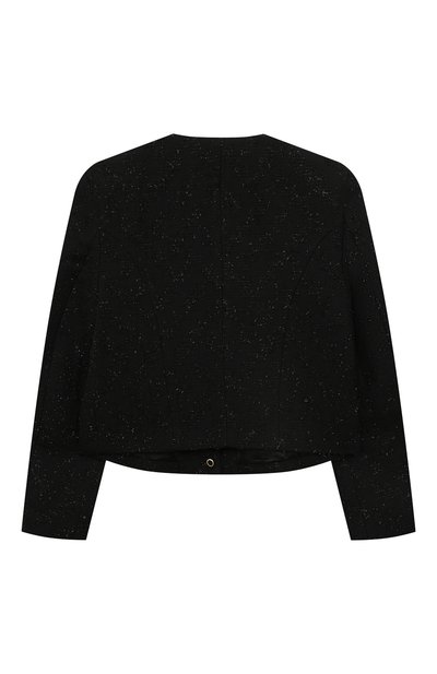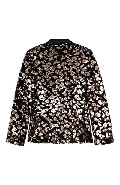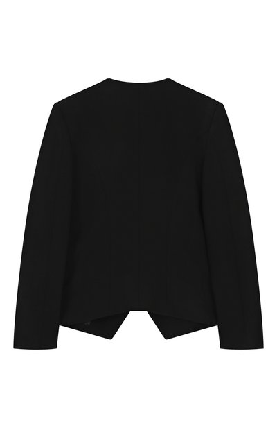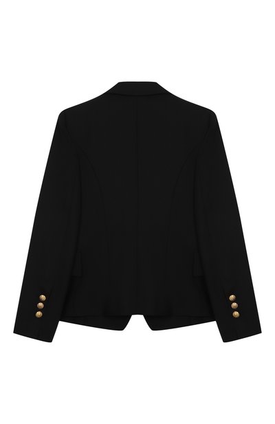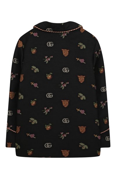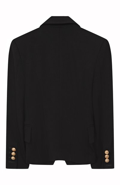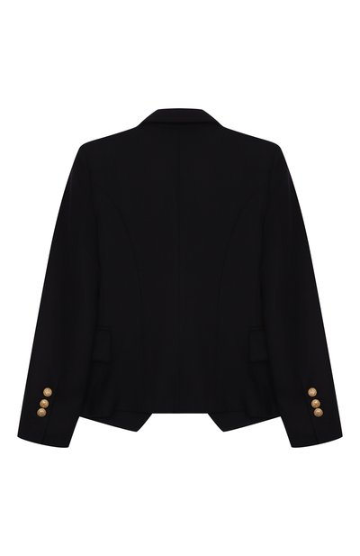 На двубортном жакете из шерстяного твила вышили фирменную монограмму. Д екор подчеркнули белым кантом на шалевых лацканах и клапанах боковых карманов. Модель с шелковистым подкладом застегивается пуговицами с головой льва.