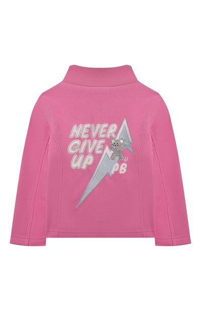 Толстовку с высоким воротником сшили из микрофлиса, обработанного с двух сторон для особой мягкости. Модель на молнии украшена спереди сердцем с логотипом марки, а сзади — объемной вышивкой с надписью Never give up.