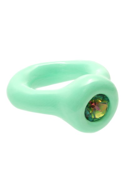Кольцо из полимерной глины покрыли глянцевым полупрозрачным лаком для защиты от трещин. Аксессуар украсили вставкой из сверкающего кристалла Swarovski.