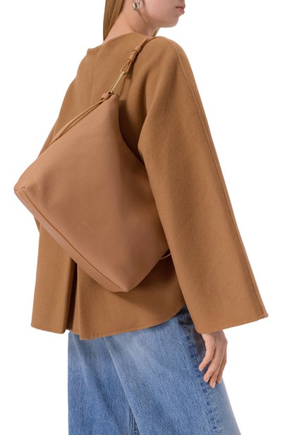 Сумка Goccia с регулируемой ручкой и двумя внутренними карманами сшита из матовой телячьей кожи. Аксессуар застегивается ремешком с золотистым магнитным цилиндром, украшенным логотипом Arch.
