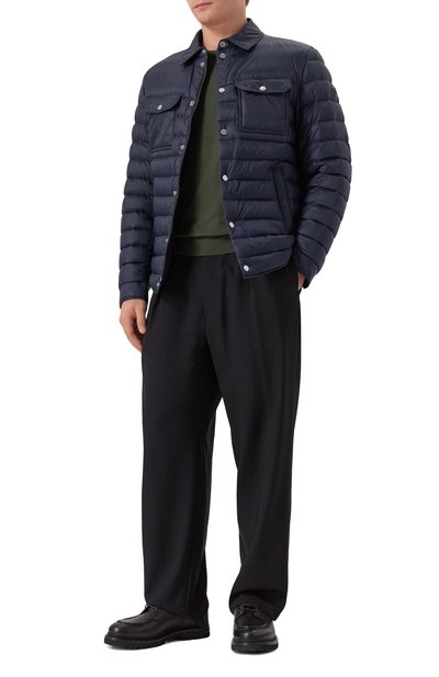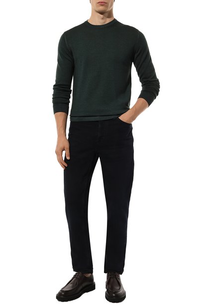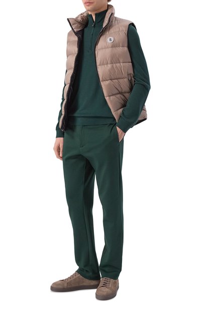 Джемпер с эластичными манжетами и поясом связали гладью из шерстяной пряжи. Модель с вышитым в тон логотипом дополнит и расслабленный повседневный образ, и комплект smart casual.