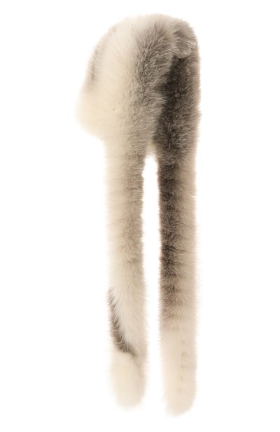 Объемный капюшон сшили из меха лисы. Из такого же материала выполнили длинные ленты, которые м ожно завязать узлом или обернуть вокруг шеи, как шарф.