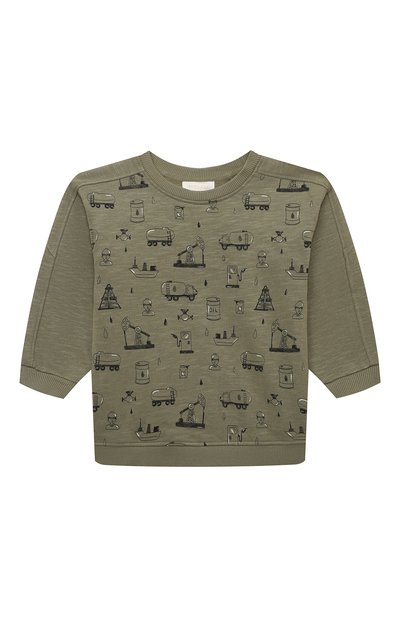 Свитшот с графичным принтом и брюки с двумя карманами и эластичным поясом-кулиской сшили из органического хлопка. Материал легко тянется и комфортно ощущается кожей.