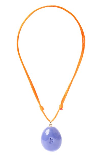 Крупный кулон, напоминающий морской камень, вручную выполнили из полимерной глины, покрытой глянцевым лаком. Модель с монограммой LA закрепили на текстильном шнуре со скользящими узлами.
