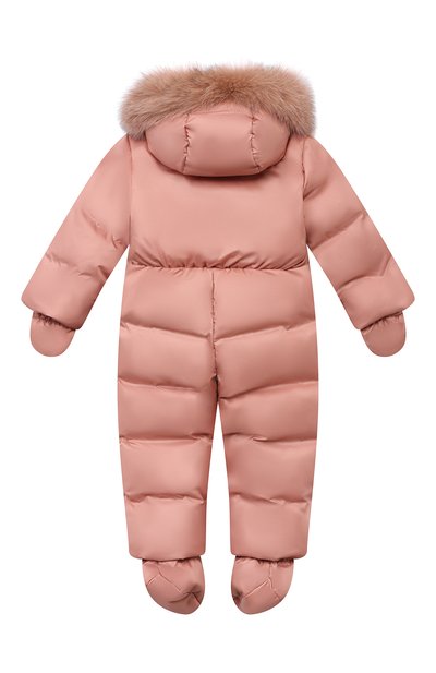 Комбинезон «Сноу» на гусином пуху сшили из полиэфира оттенка пыльной розы. Талию подчеркнули эластичным поясом с фастексом. По бокам предусмотрели врезные карманы. Модель с капюшоном и манжетами-резинками застегивается молнией с защитой от защемления подбородка.