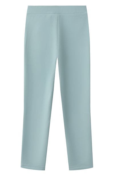 Брюки оттенка natural white выполнили из водоотталкивающего неопрена с флисовой изнанкой. Модель с прошитыми стрелками и широким поясом дополнили двумя карманами по бокам.
