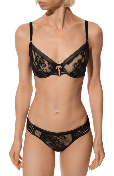 Трусы-танга Vibes с графичной вышивкой выполнили из эластичного тюля. Пояс модели украсили подвеской спереди, которой вторит шарм на перемычке сзади.