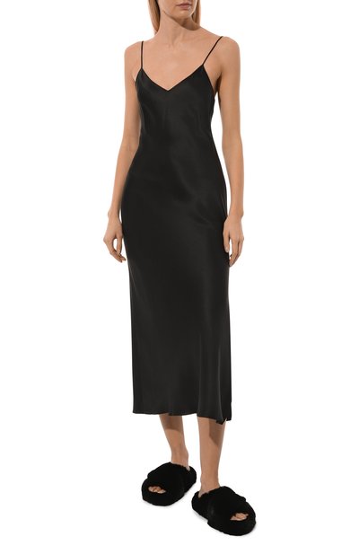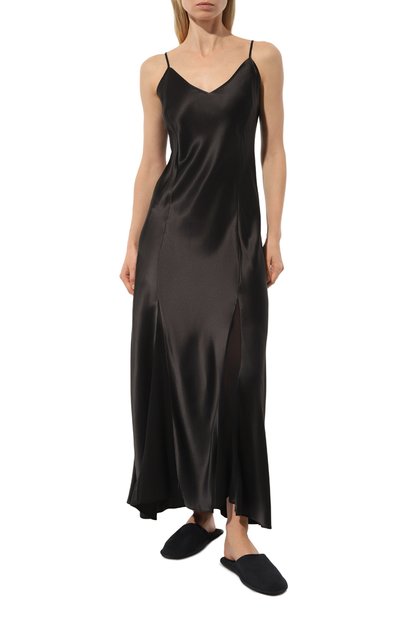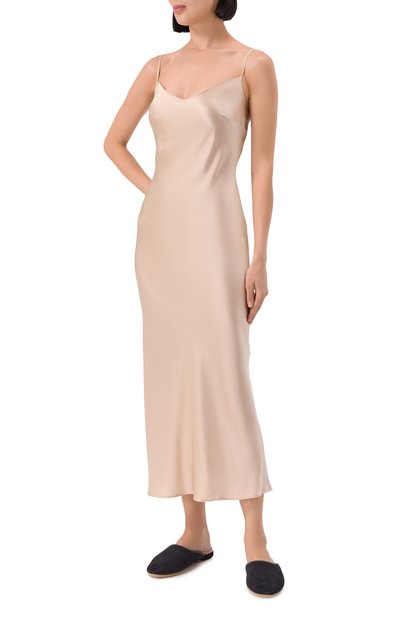 Полуприлегающая сорочка с узкими регулируемыми бретелями и открытой спиной вошла в коллекцию Tracy. Для пошива модели использовали атлас из чистого шелка.