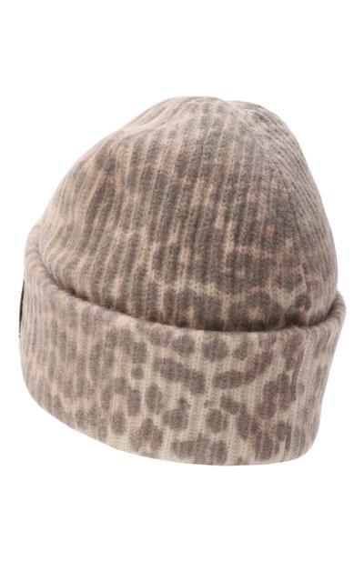 Шапку бини связали крупной резинкой из толстой смесовой пряжи на основе шерсти овцы и альпака. Широкий отворот украсили брендированным текстильным ярлыком.